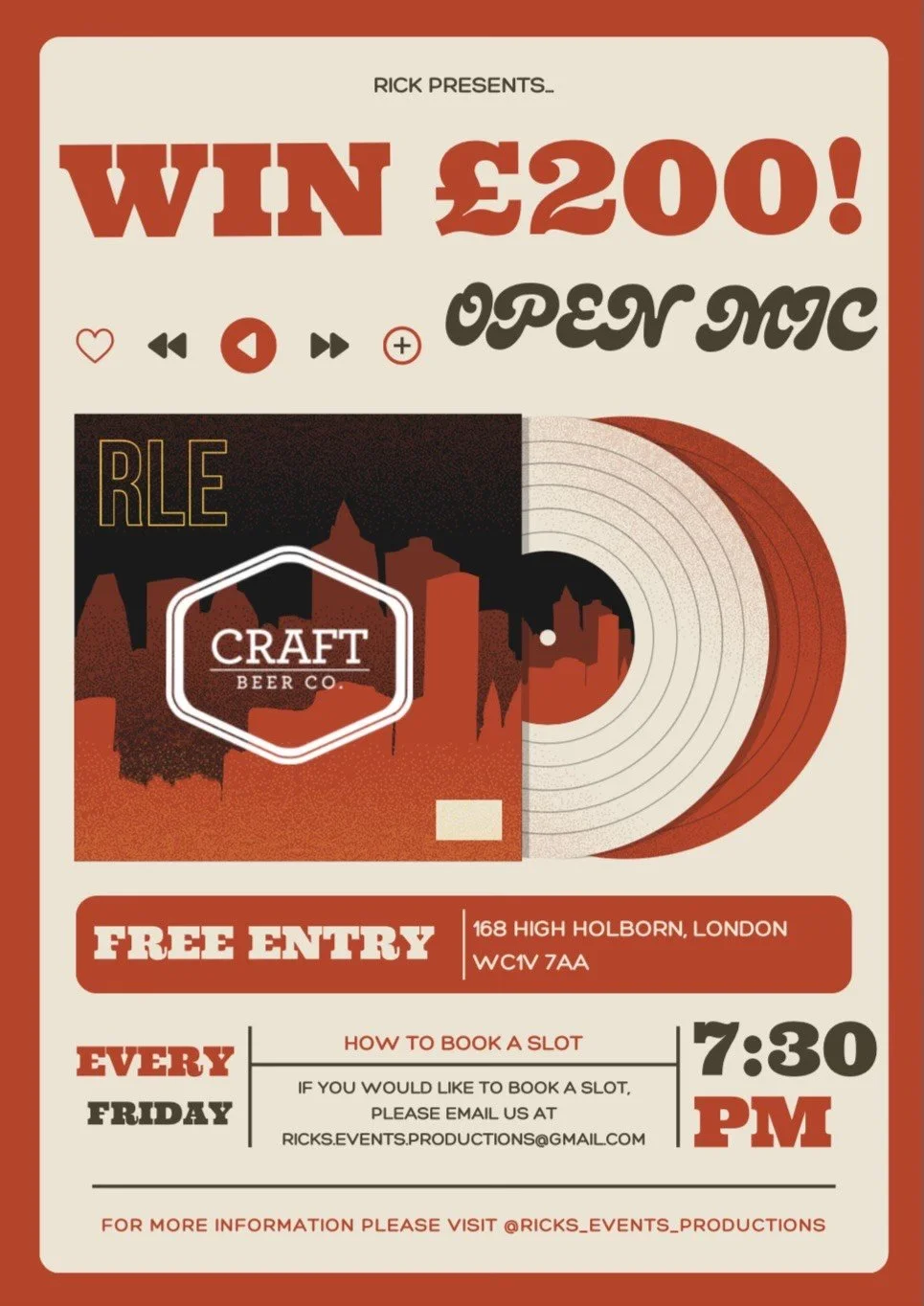 Join us for weekly open mic nights in Covent Garden - Every Friday from 7:30pm onwards.